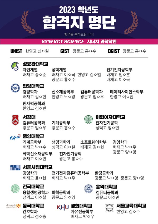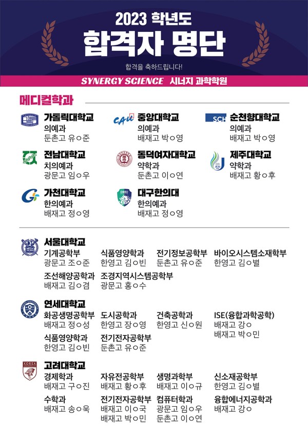 시너지 과학학원 2023 합격자 명단 페이지 정보 작성자 와이즈과학학원 댓글 0건 조회 415회 작성일 23-03-25 13:25 목록 본문 합격을 축하드립니다! 이전글시너지 과학학원 '출석 알림'과 '비대면 간편결제' '강의 안내' 이용 가이드 23.09.07 다음글수강료 인상 안내문 23.02.15 댓글 0 댓글목록 등록된 댓글이 없습니다.